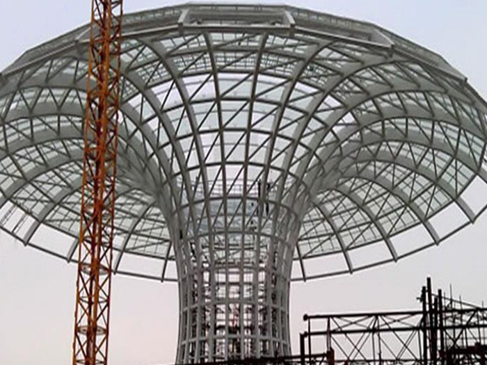 二、球形网架结构因其结构新颖,受力合理,自重轻、用钢量低等优点。如大型体育场馆球形邵武螺栓球网架、公共场馆球形网架、电厂邵武螺栓球网架、水泥工业球形网架、仓储物流球形网架、邵武干煤棚工业球形网架、邵武收费站邵武加油站球形网架、展览中心、影剧院、商场、航站楼、候车厅、工厂邵武车间、仓库、电视塔等球形螺栓球节点网架。国内球形网架结构主要分为:邵武焊接球节点网架及螺栓球节点网架两种。螺栓球节点网架其构件工厂内加工量较大,现场安装便捷,适用于现场工期紧,邵武施工条件、用电量受制约,网架形状复杂、邵武杆件定位困难的异形结构。螺栓球节点球形网架系统基本由邵武杆件、螺栓球、支撑支座等组成。按照节点形式可分为交叉邵武桁架体系、四角锥体系、三角锥体系等。支撑方式多为固定支座支撑。对于大面积、大跨度及有特殊受力或伸缩要求的网架结构可采用橡胶支座、滑移支座、球铰支座等支撑形式,以满足结构自身的受力稳定、均衡,便于内力释放等设计要求。